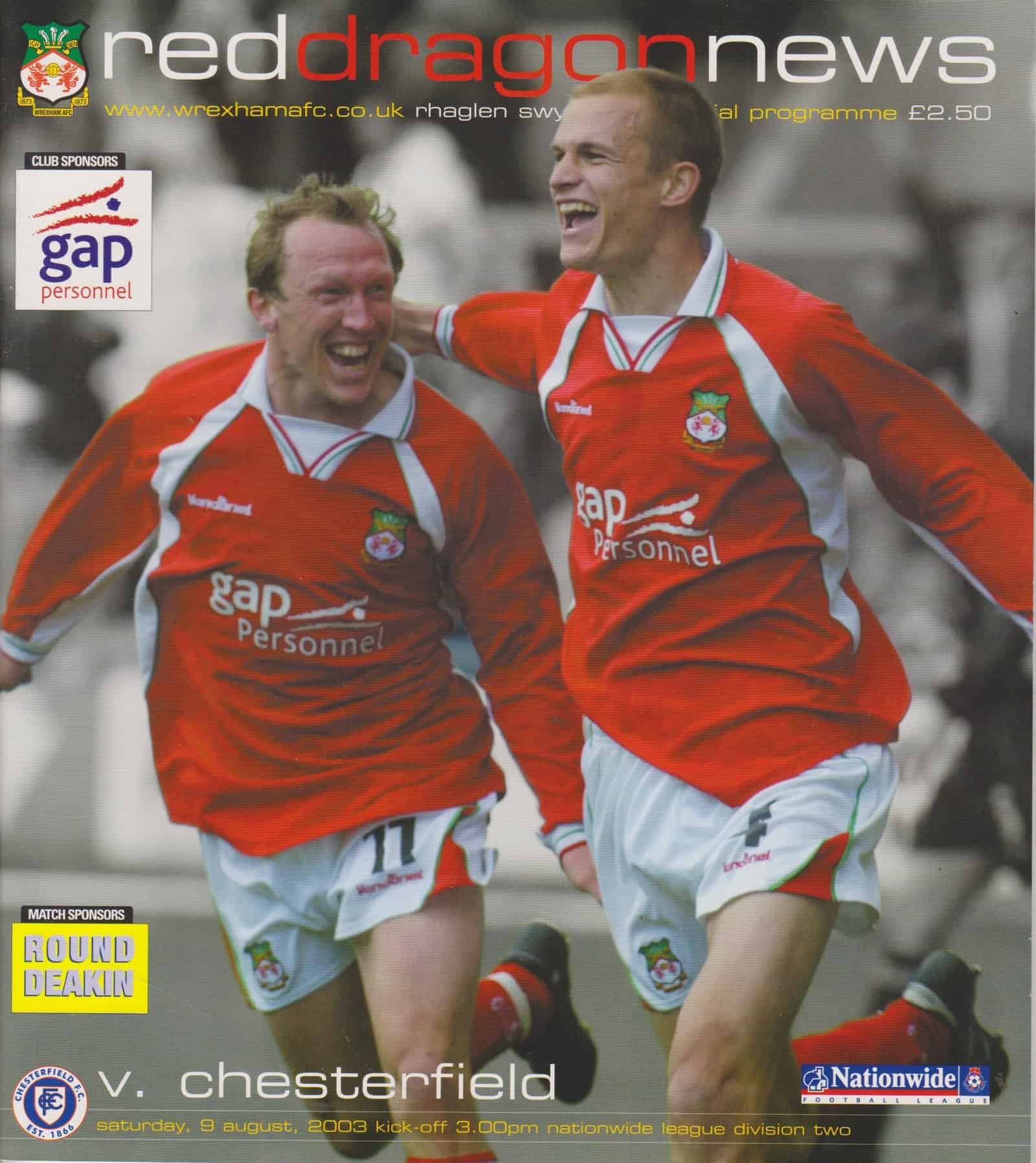 Match: Wrexham v Chesterfield Competition: Nationwide League Division 2 Date: 09-08-2003 Comments: Rating: 4 Condition: Very good Weight in grams: 100