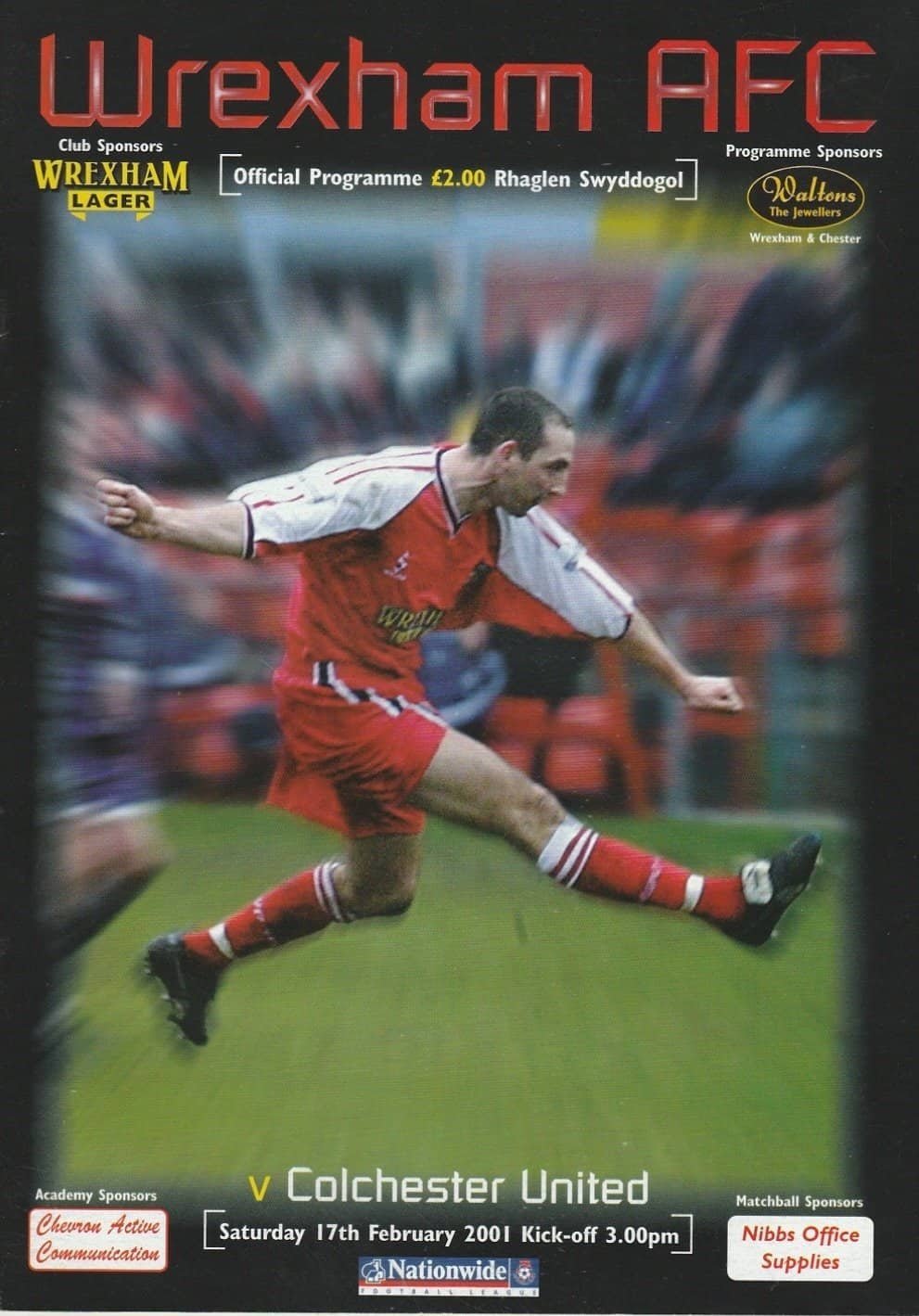 Match: Wrexham v Colchester United Competition: League Division 2 Date: 17-Feb-2001 Comments: Rating: 4 Condition: Good Weight in grams: 120