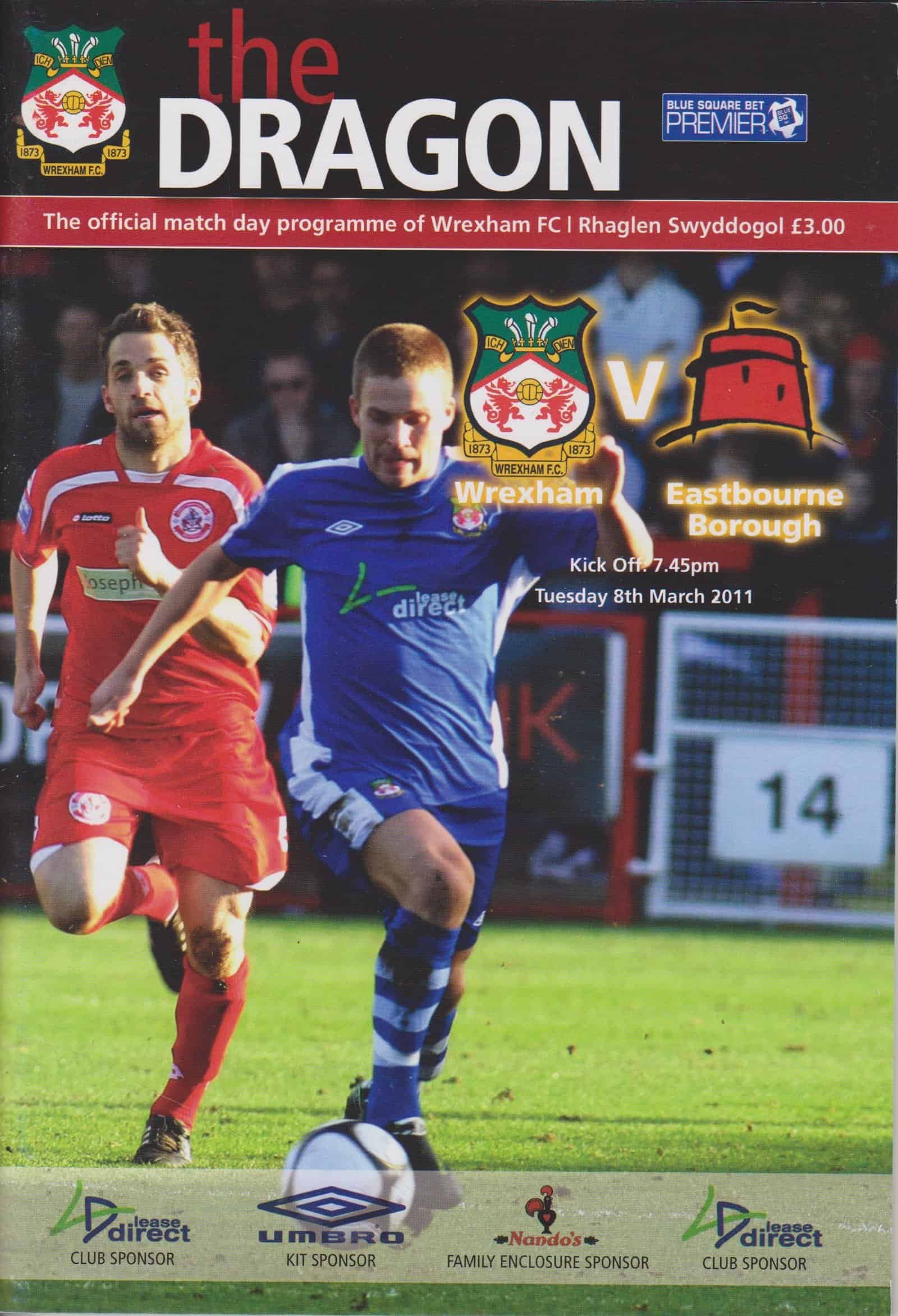 Match: Wrexham v Eastbourne Borough Competition: Blue Square Bet Premier Date: 08-03-2011 Comments: Rating: 5 Condition: Excellent Weight in grams: 100