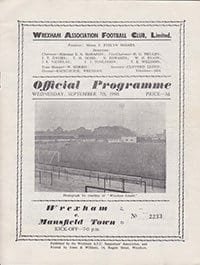 Match: Wrexham v Mansfield Town Competition: League Division 4 Date: 07-09-1960 Comments: Rating: 4 Condition: Score on face, team changes Weight in grams: 40