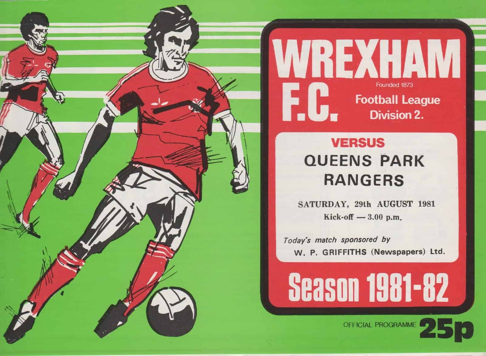 Match: Wrexham v Queens Park Rangers Competition: League Division 2 Date: 29-Aug-1981 Comments: Rating: 4 Condition: Very good Weight in grams: 60