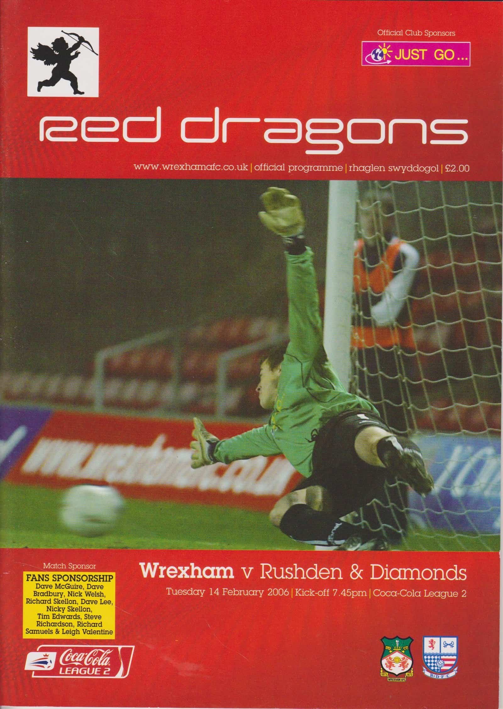 Match: Wrexham v Rushden & Diamonds Competition: Coca Cola League 2 Date: 14-02-2006 Comments: Rating: 4 Condition: Very good Weight in grams: 80
