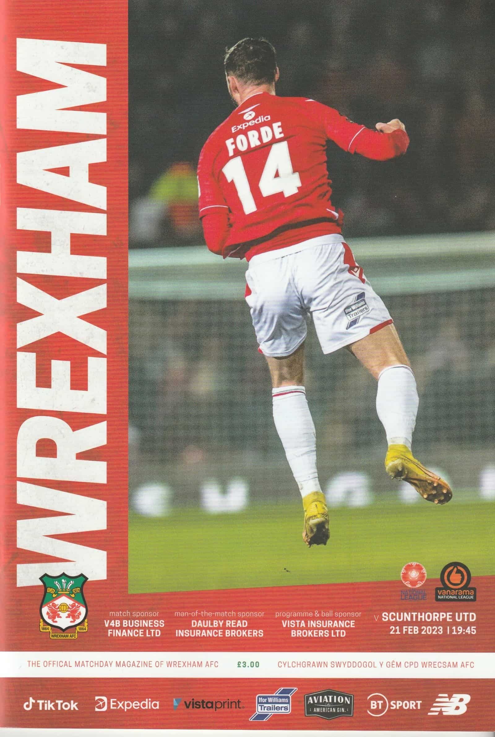 Match: Wrexham v Scunthorpe United Competition: Vanarama National League Date: 21-Feb-2023 Comments: Wrexham National League Championship season Rating: 4 Condition: Very good Weight in grams: 200