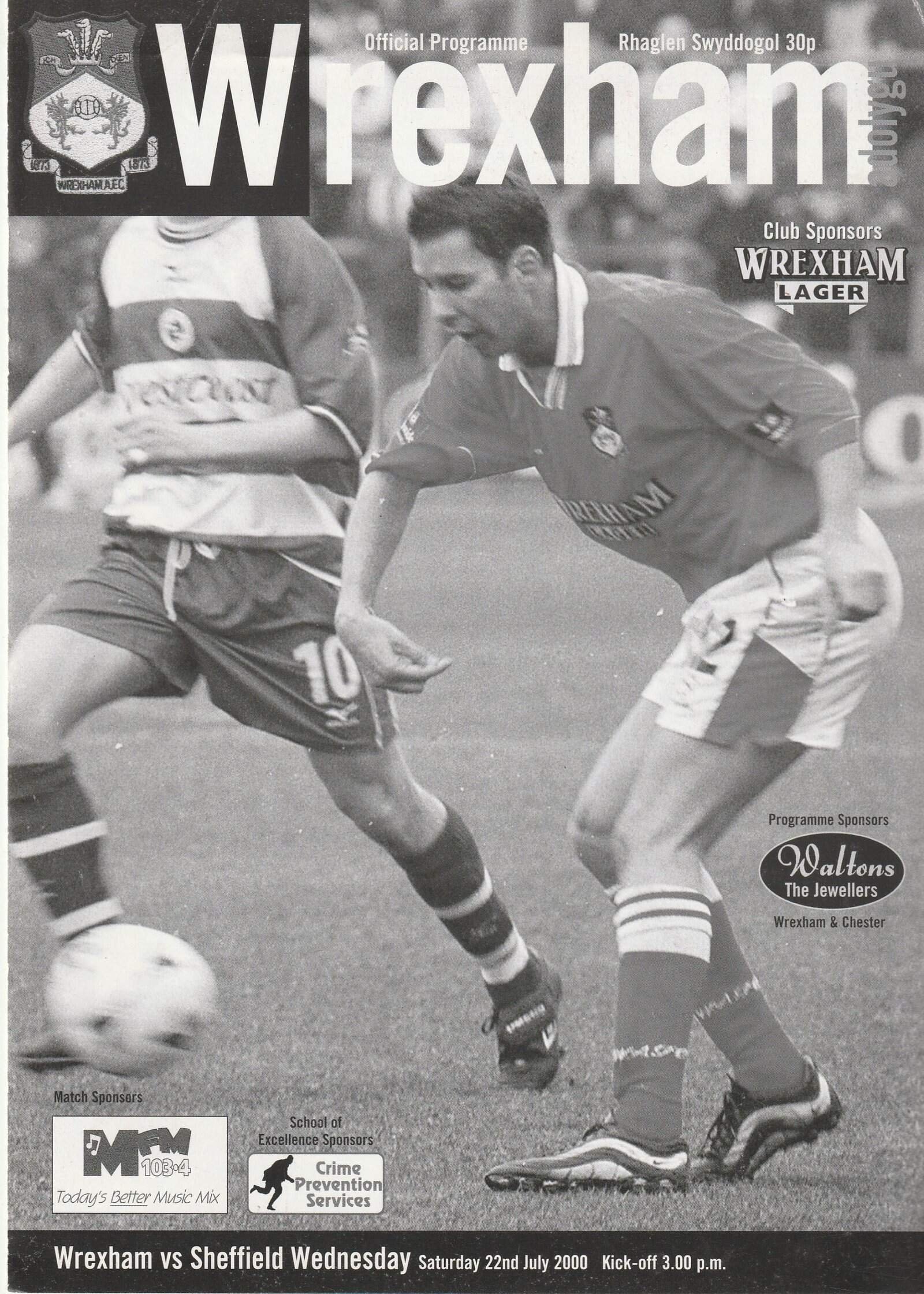 Match: Wrexham v Sheffield Wednesday Competition: Friendly Date: 22-Jul-2000 Comments: 4 page issue Rating: 3 Condition: Slight wear on top edge Weight in grams: 140