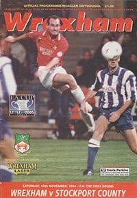 Match: Wrexham v Stockport County Competition: FA Cup 1st Round Date: 12-11-1994 Comments: Rating: 4 Condition: Slight corner turn Weight in grams: 80