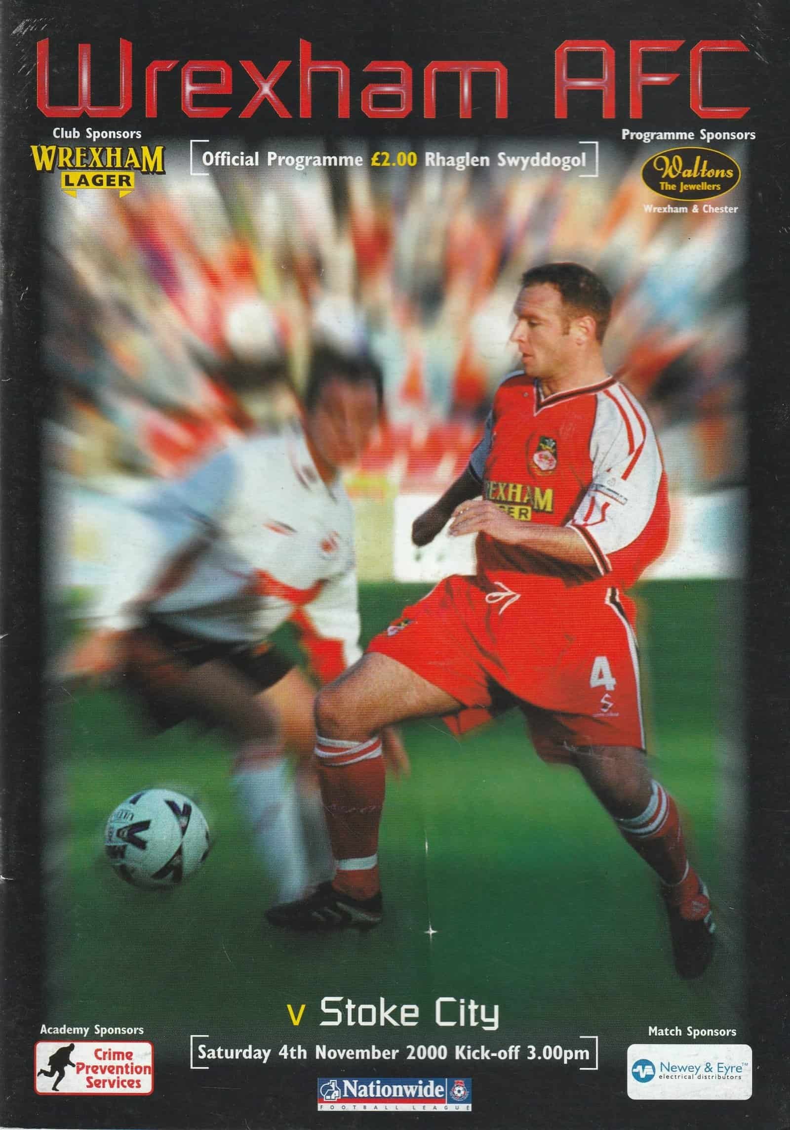 Match: Wrexham v Stoke City Competition: Nationwide League Division 2 Date: 04-Nov-2000 Comments: Rating: 3 Condition: Slight fold Weight in grams: 140