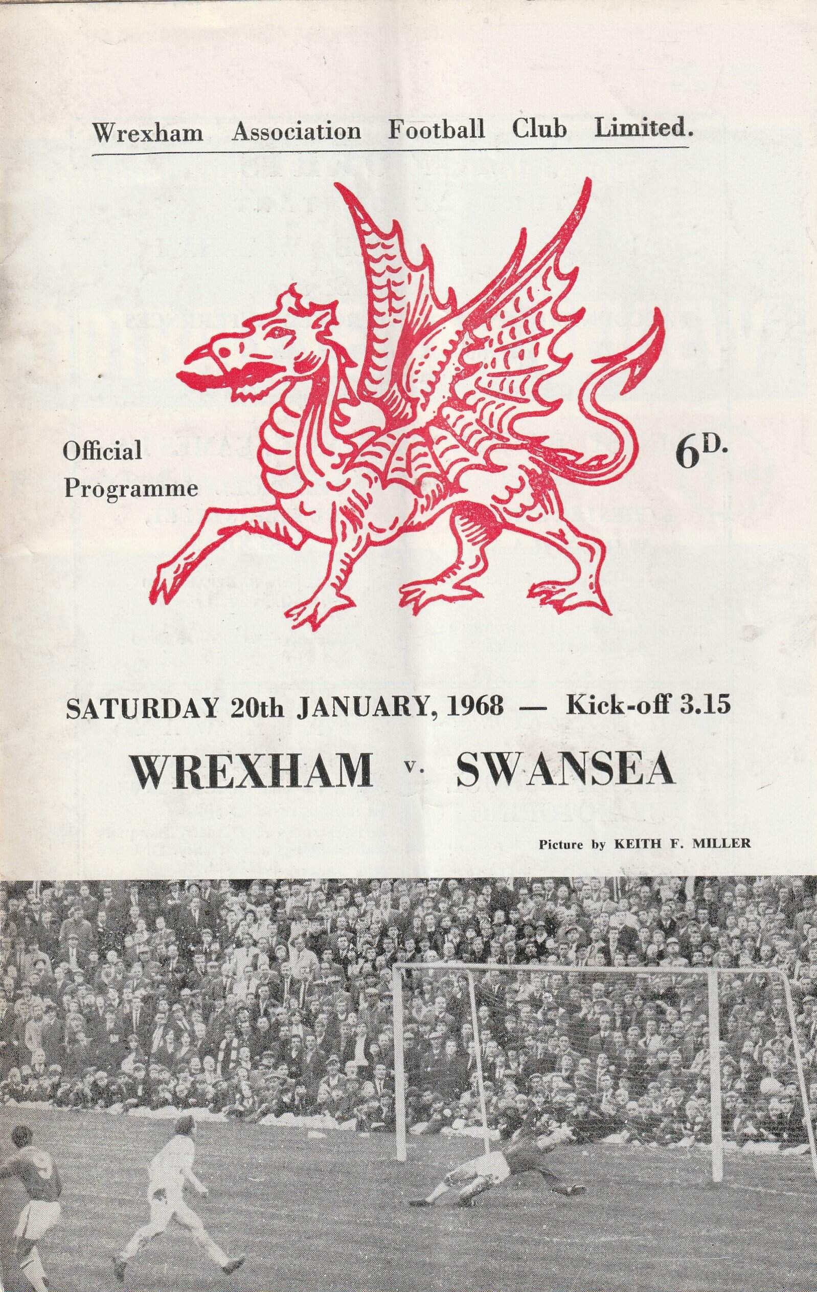 Match: Wrexham v Swansea City Competition: League Division 4 Date: 20-Jan-1968 Comments: Rating: 3 Condition: Fold, tear on spine, light soiling and crease on back page Weight in grams: 60