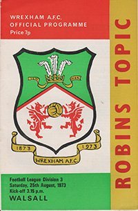 Match: Wrexham v Walsall Competition: League Division 3 Date: 25-08-1973 Comments: Rating: 4 Condition: Team changes Weight in grams: 40