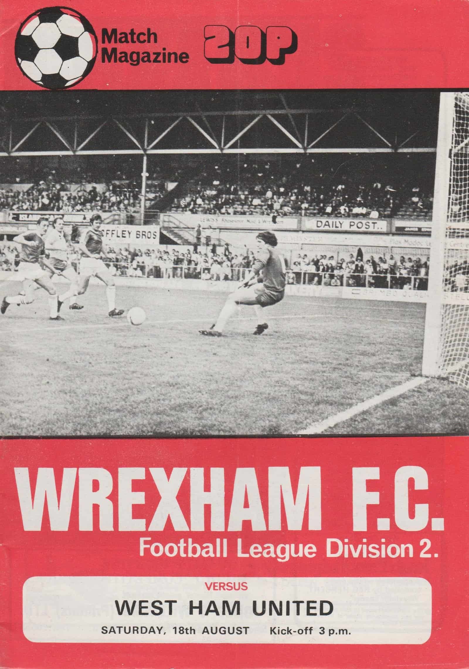 Match: Wrexham v West Ham United Competition: League Division 2 Date: 18-Aug-1979 Comments: Rating: 3 Condition: Fold Weight in grams: 80