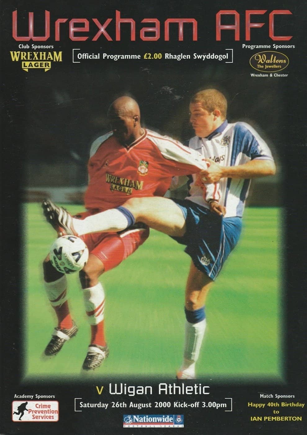 Match: Wrexham v Wigan Athletic Competition: League Division 2 Date: 26-Aug-2000 Comments: Rating: 4 Condition: Very good Weight in grams: 140