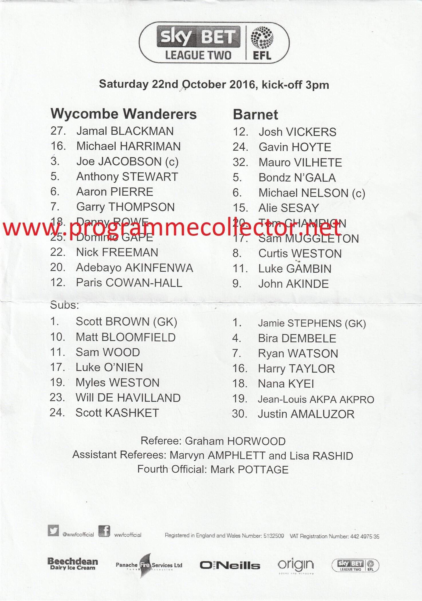 Match: Wycombe Wanderers v Barnet