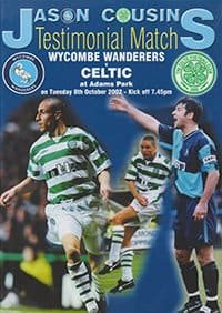 Match: Wycombe Wanderers v Glasgow Celtic Competition: Friendly Date: 08-10-2002 Comments: Jason Cousins Testimonial Rating: 5 Condition: Excellent Weight in grams: 140