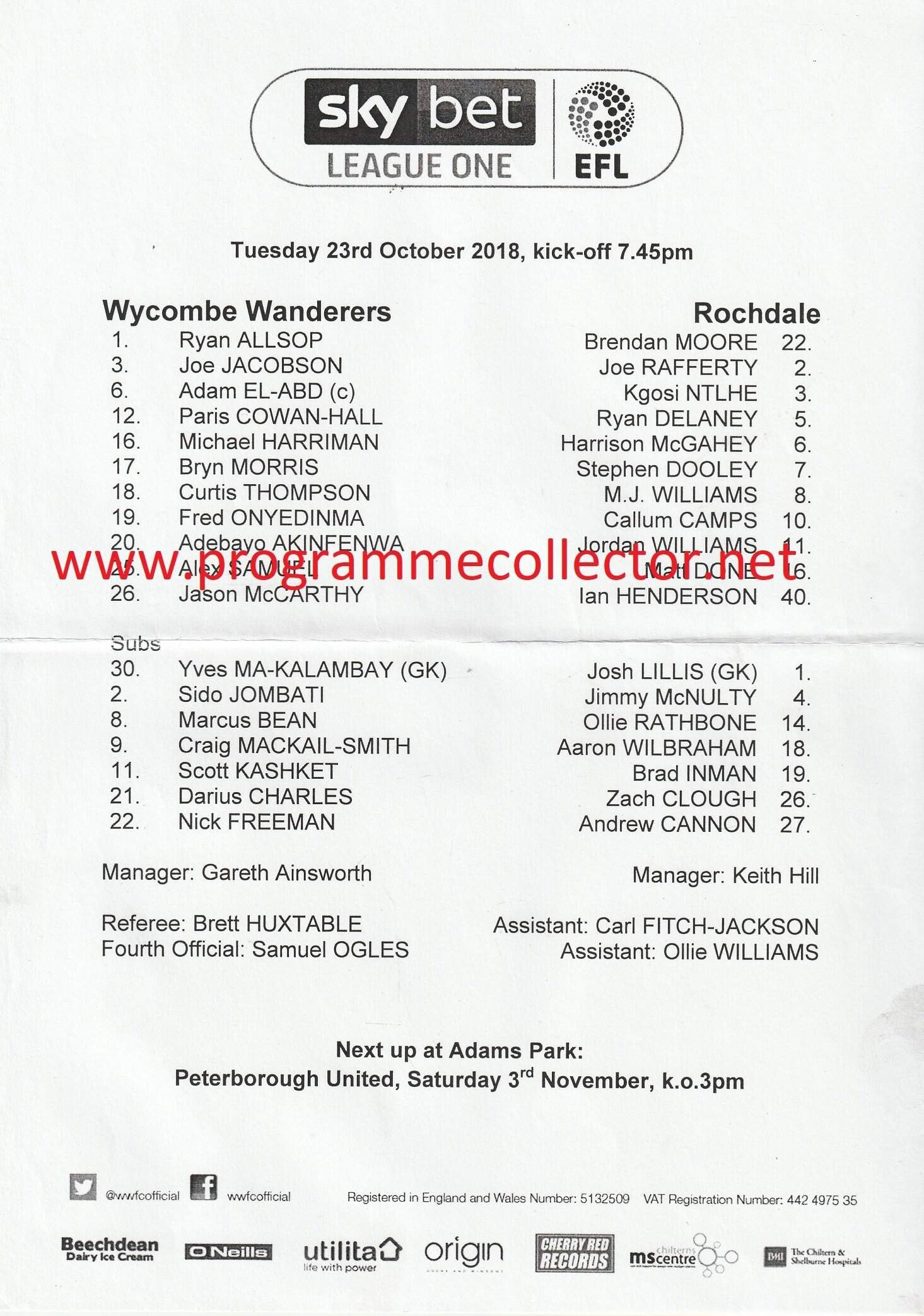 Wycombe Wanderers v Rochdale 23-Oct-2018