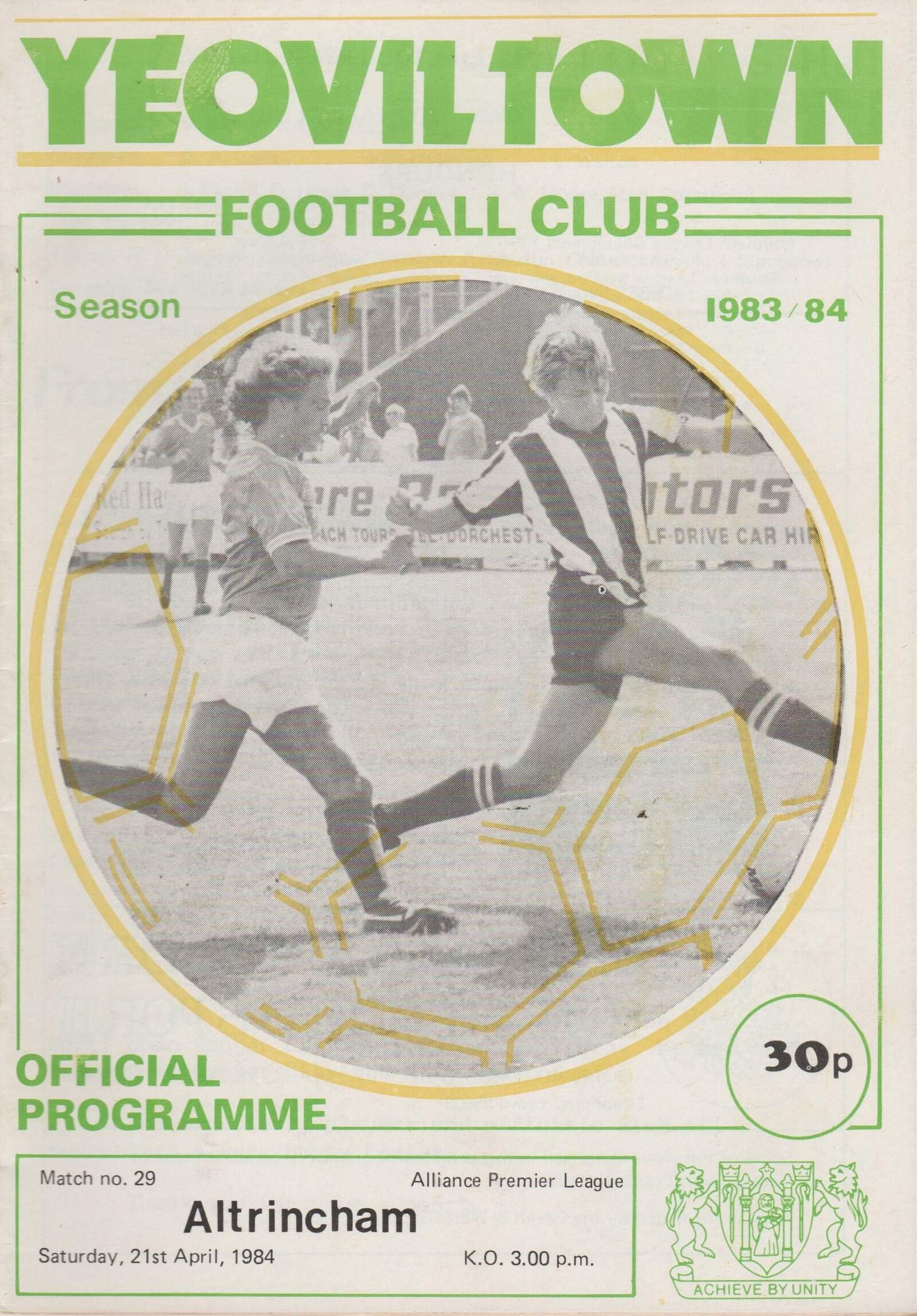 Match: Yeovil Town v Altrincham Competition: Alliance Premier League Date: 21-Apr-1984 Comments: Rating: 4 Condition: Very good Weight in grams: 60