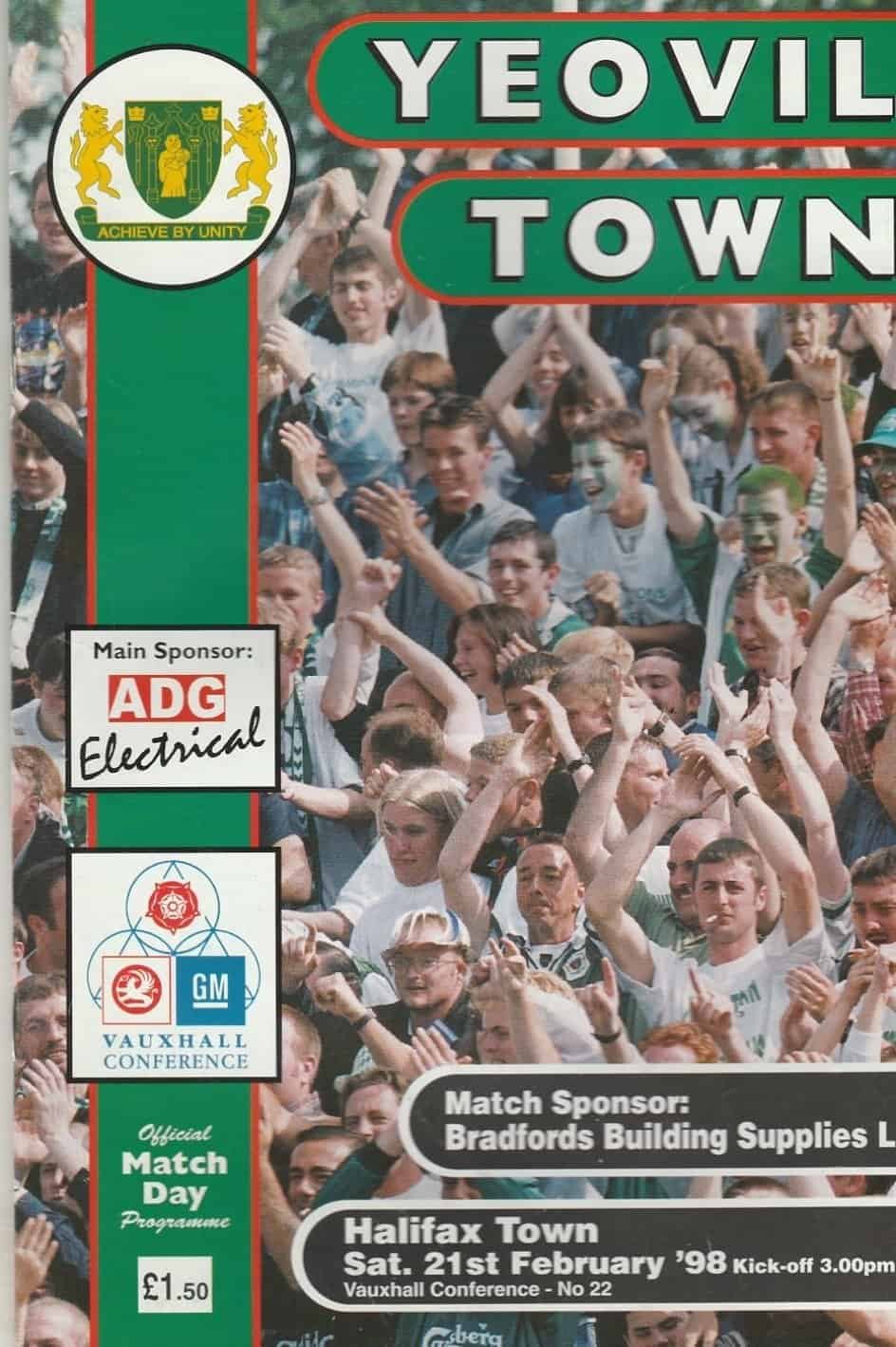 Match: Yeovil Town v Halifax Town Competition: Vauxhall Conference Date: 21-Feb-1998 Comments: Rating: 4 Condition: Good Weight in grams: 160