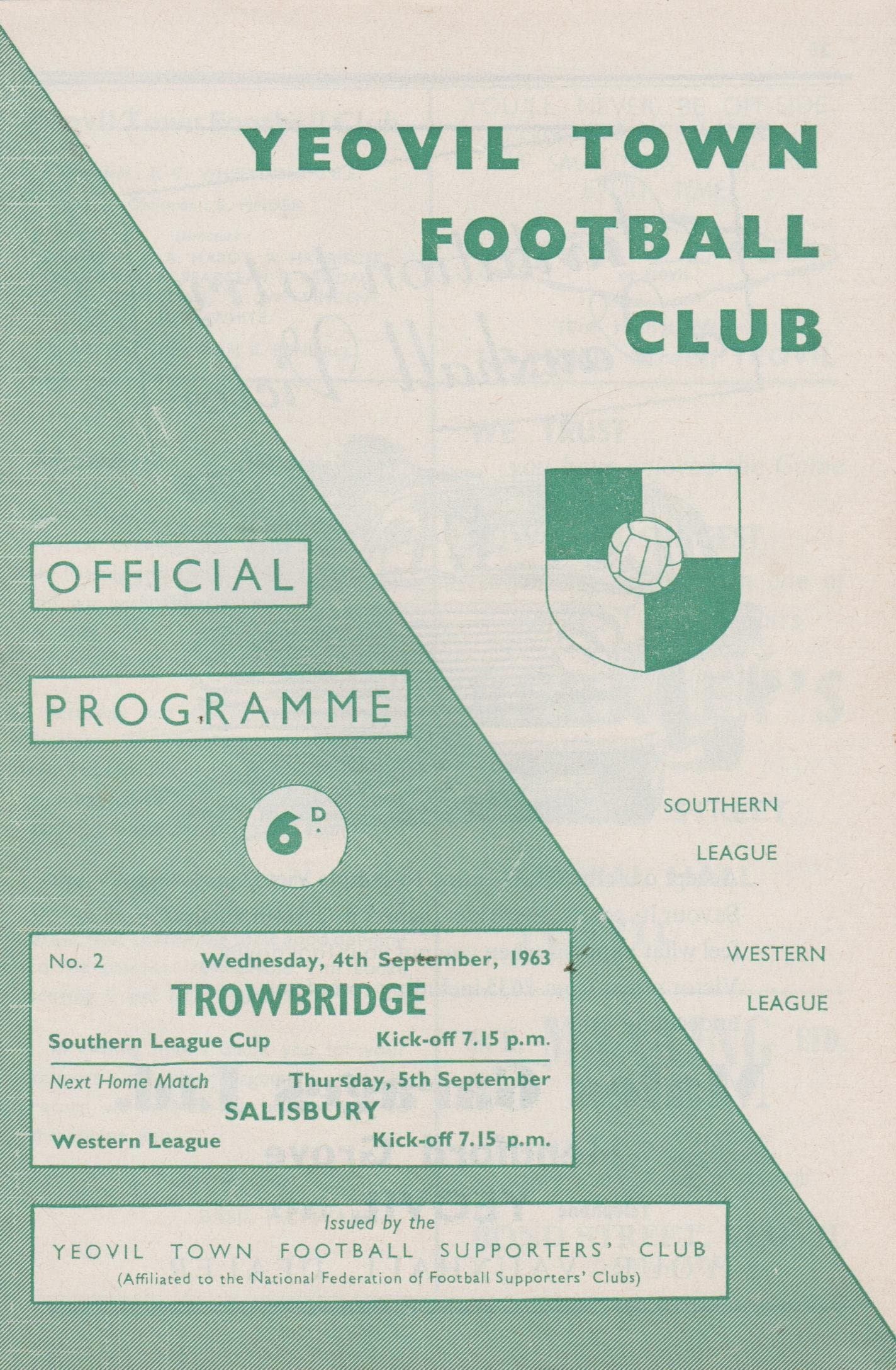 Match: Yeovil Town v Trowbridge Town Competition: Southern League Cup Date: 04-Sep-1963 Comments: Rating: 4 Condition: Very good Weight in grams: 40