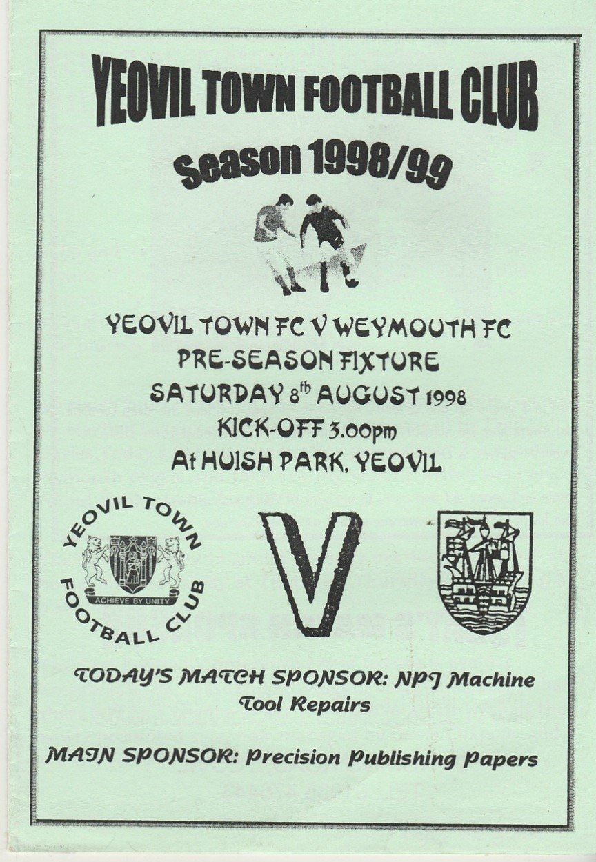 Match: Yeovil Town v Weymouth Competition: Friendly Date: 08-Aug-1998 Rating: 4 Condition: Very good Weight in grams: 60