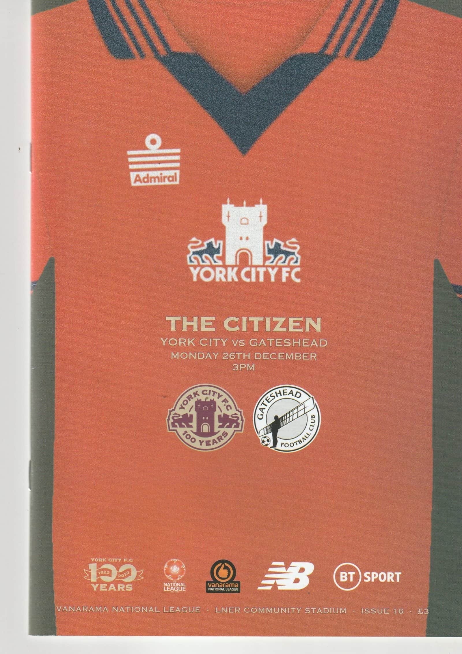 Match: York City v Gateshead Competition: Vanarama National League Date: 26-Dec-2022 Comments: Rating: 4 Condition: Very good Weight in grams: 200