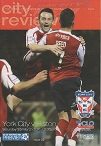 Match: York City v Histon Competition: Blue Square Bet Premier League Date: 26-03-2011 Comments: Rating: 4 Condition: Very good Weight in grams: 100