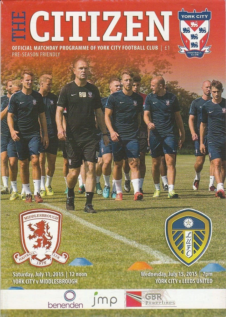 Match: York City v Middlesbrough Competition: Friendly Date: 11-Jul-2015 Comments: Joint issue for Leeds United game Rating: 4 Condition: Very good Weight in grams: 80