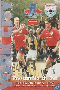 Match: York City v Preston North End Competition: Auto Windscreens Shield 2nd Round Date: 07-01-1997 Comments: Rating: 4 Condition: Very good Weight in grams: 120