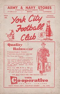 Match: York City v Walsall Competition: League Division 4 Date: 22-11-1958 Comments: Rating: 3 Condition: Crease, foxing on cover, season written on page 3 Weight in grams: 40